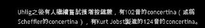 (I tried a translation of the Chinese text, using the Babelfish, and here's what I got: After Uhlig, some people continued to attempt increasing the pressed key number, some 102 sound's concertinas (the so-called Scheffler concertina), and Kurt Jobst has manufactured 124 sound concertinas).